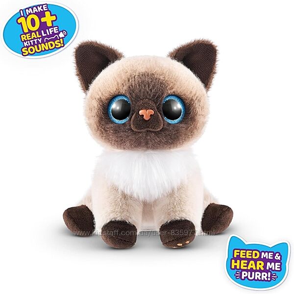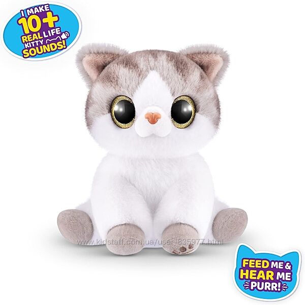Ці кошенята стануть вашим наступним муркочущим другом! Нагодуйте свого голодного кошеня з його пляшечки з молоком і почуйте, як воно муркоче. Прийміть усіх 8 кошенят, включно з надзвичайно рідкісним Райдужним Кітті! Розпакуйте 5 сюрпризів, включаючи суміш для кошачих туалетів. Ці чарівні кошенята видають понад 10 справжніх звуків кошенят, а їхні очі світяться в темряві! Вони не можуть дочекатися зустрічі з вами!Нагодуй мене: використовуй пляшку з молоком, щоб нагодувати кошеня