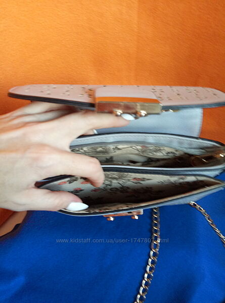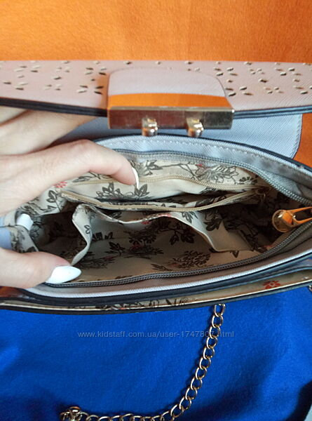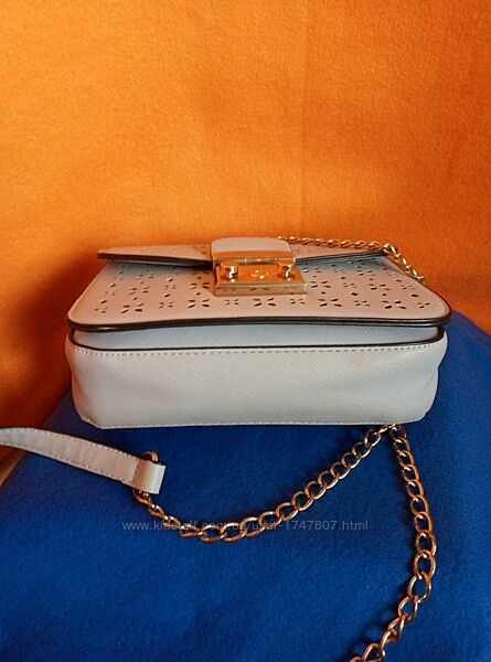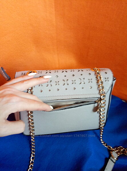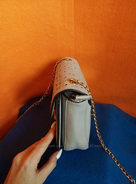 --Сумка кросбоді в стилі Furla. Нова. Не ношена. Без етикетки. Є кілька поверхневих малопомітних подряпин на верхній частині замка, але потрібно придивлятися. --Колір:матовий сірий, в перфорованих отворах блискучий срібний. Чорна окантовка по всьому периметру.--Матеріал сумки: щільна экошкіра. Підклад: принтована синтетична тканина. Одне основне відділення, плюс з однієї сторони кишеня на блискавці, с іншої-простора кишеня без застібки.