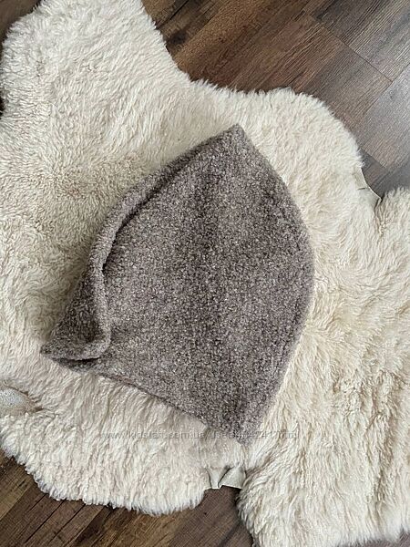Ексклюзивною знахідкою для тих, хто шукає оригінальні елементи образу, стане затишний капор. Головний убір має вигляд, як намотаний на голову шарф із магнітними зборочками в зоні шиї, що фіксують посадку. Об´ємна модель із фактурного букле, з властивою йому вузлій поверхнею, утеплена м´якою флісовою підкладкою. До складу тканини в різному співвідношенні входить шерсть і синтетичні волокна, що ідеально підходять для зими.Склад: 12% вовна 56% поліестер 28% акрил 4% еластан