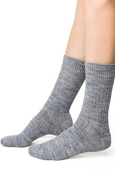Шкарпетки жіночі теплі з вовни. До складу вовняної пряжі додані волокна шовковистої дуже ніжної вовни "альпака". Волокна вовни альпака в кілька разів міцніші за вовну. Вироби з них дуже гладкі та м´які, не викликають алергії. Закручені нитки утворюють повітряні кишені, які добре утримують тепло. Довжина шкарпетки класична. Модель має зручну резинку, що не тисне та анатомічну п´яту.Склад: 56% акрил; 22% вовна; 11% поліамід; 9% альпака; 1% еластанВиробник Steven Польща