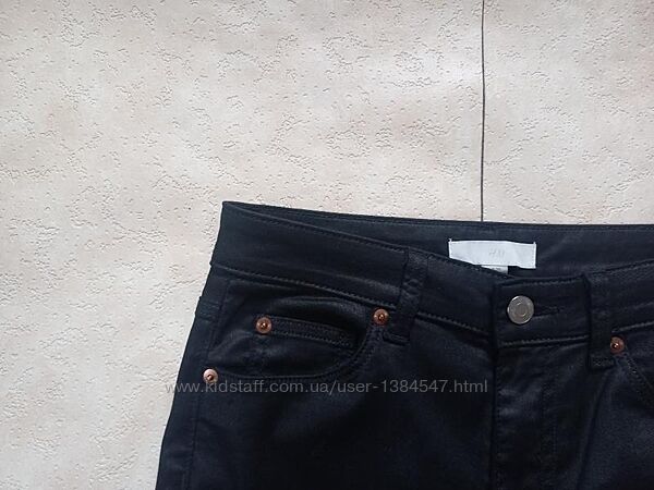 Брендовые черные джинсы скинни с пропиткой под кожу H&M, 36 размер.