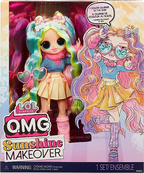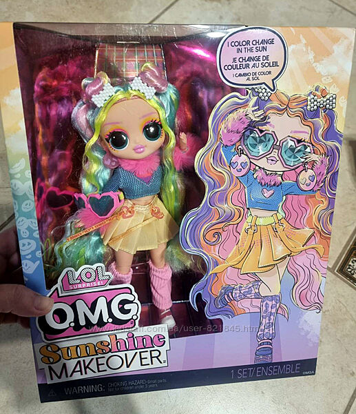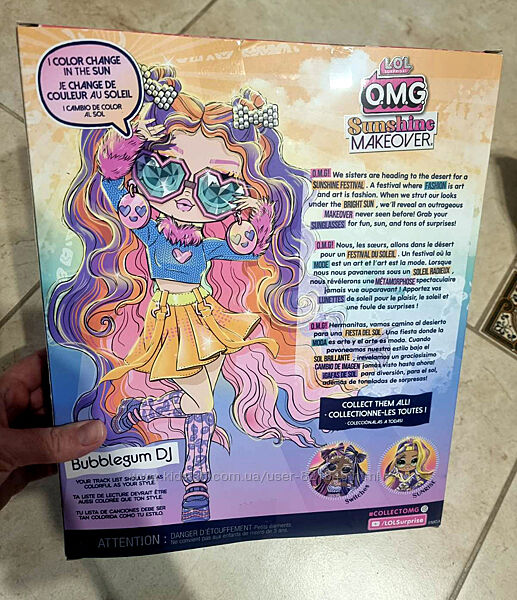 Велика лялька L.O.L. Surprise! OMG Sunshine Color Change Bubblegum DJ Fashion Doll. До набору входить лялька та 11 сюрпризів, як-от одяг, взуття, підставка, прикраси, гребінець та інше. Волосся, одяг і взуття змінюють колір залежно від освітлення! Оригінал. Всього в серії 3 ляльки.