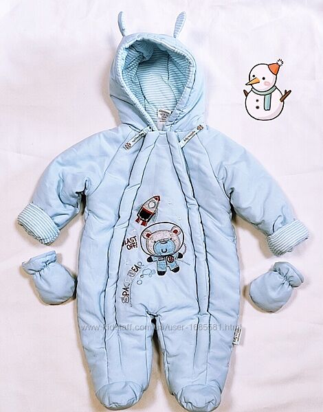 4) Цена 300грн 0-3 мес комбинезон с варежками ушками и аппликацией утепленный демисезонный еврозима baby snugglers
