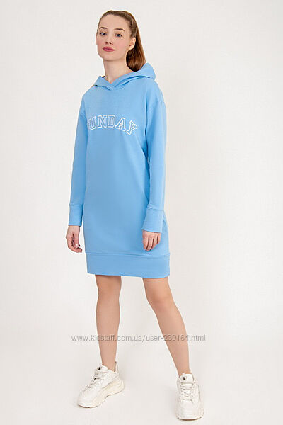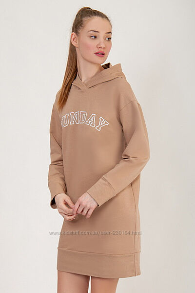Заміри є на останьому фото!Стильна сукня-худі виготовлена з турецького трикотажного полотна "Футер двонитковий". Модель вільного крою, має капюшон, спереду прикрашена стильною та модною вишивкою. Сукня виконана в актуальних кольорах, чудово доповнюється кросівками, кедами або високими черевиками чи чобітками.