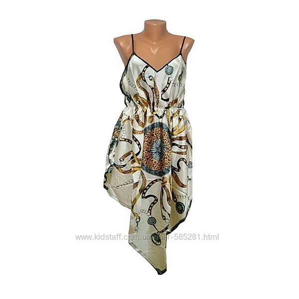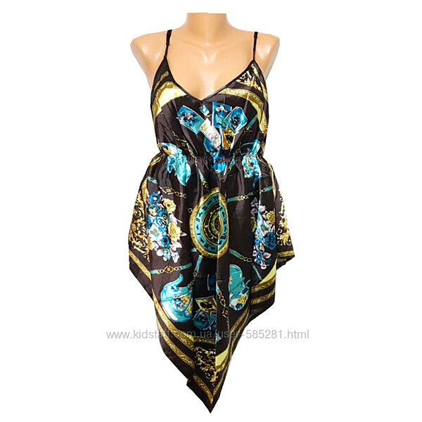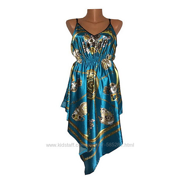 гарний сарафан з атласного штучного шовку, елегантний принт, бретельки регулюються, приталений на гумці, гумка тягнеться, якісне виготовлення та тканина. Елегантний сарафан для пляжу, дому та літньої прогулянки.