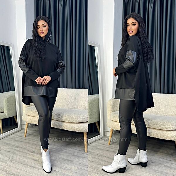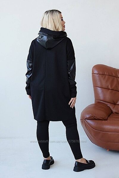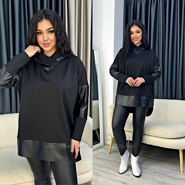Туніка вільного кроюПодовжена спинка, вставки з еко-шкіри.