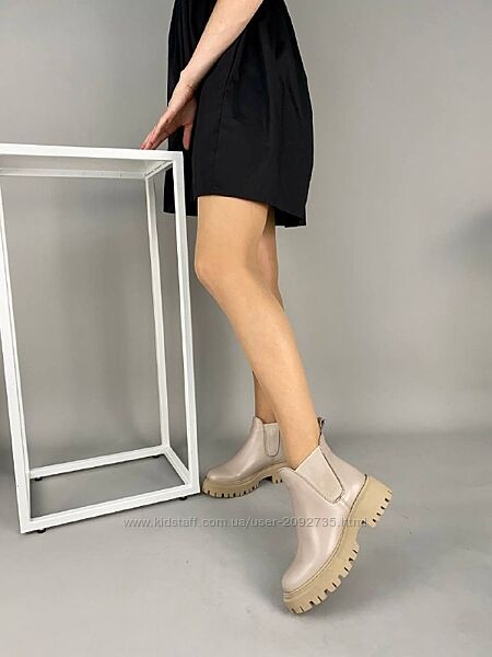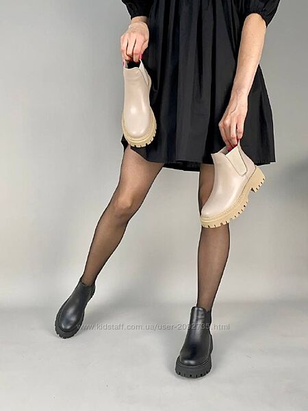 Подробное описание: Челсі жіночі шкіряні бежевого чорного кольору демісезонні Артикул 9942