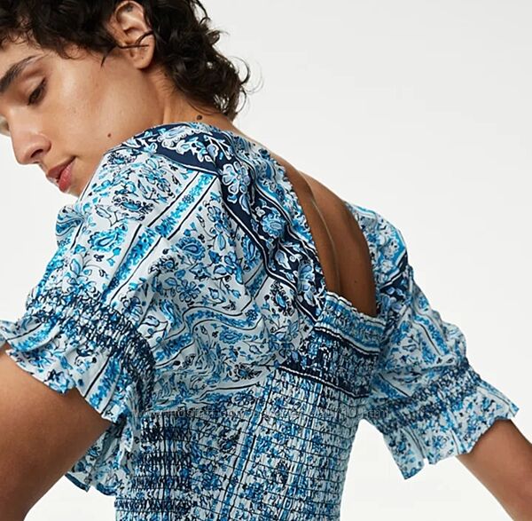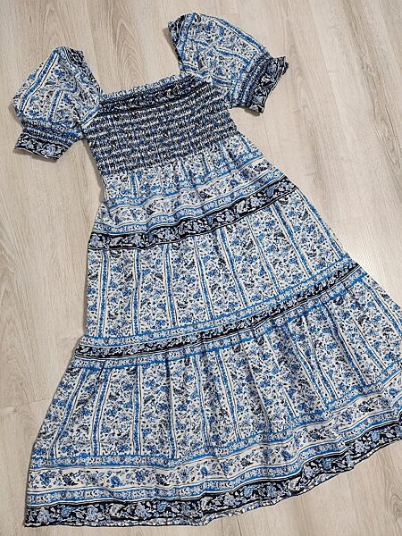 Подробное описание: Ярусное цветочное платье миди M&S milkmaid коттон