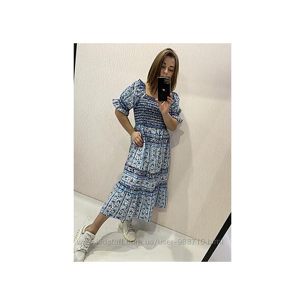 Красивое ярусное платье в актуальном стиле milkmaid с квадратным декольте и рукавами 100%коттонНовое,но без бумажной бирки, примерялось,но не ходило.