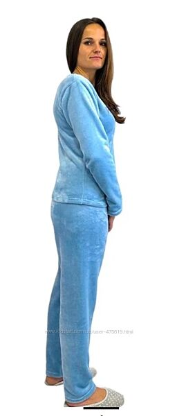 Стильна жіноча піжама виконана із трикотажної тканини махра.Мякенька приємна до тіла піжама спереді на кофтинці декорована якісною вишивкою.