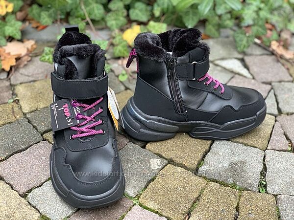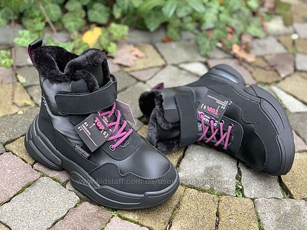 Зимові теплі черевики від виробника Tom.m для маленьких модниць.Матеріал верху - шкіра комбінована, мембранна тканина, водовідштовхувальні матеріали