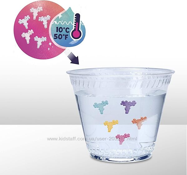 Використовуйте деталі всередині набору, щоб побудувати індивідуальну версію Crystal Brighthouse. Потім розширте сцену, зібравши картонні висувні споруди. Деякі аксесуари змінюють колір під впливом води.