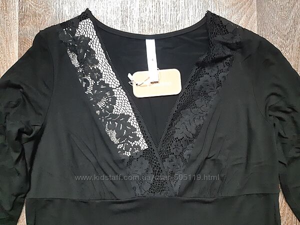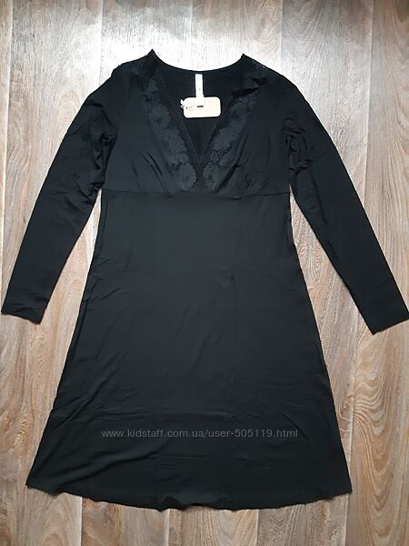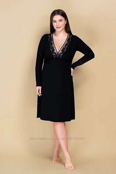 Розкішна нічна сорочка/домашня сукня із модалу і мережива з "V-подібним" декольте, прилеглого силуету, відрізний ліф прикрашений кокеткою з мережива вздовж декольте, довгі рукава.Модал - вдосконалена віскоза: