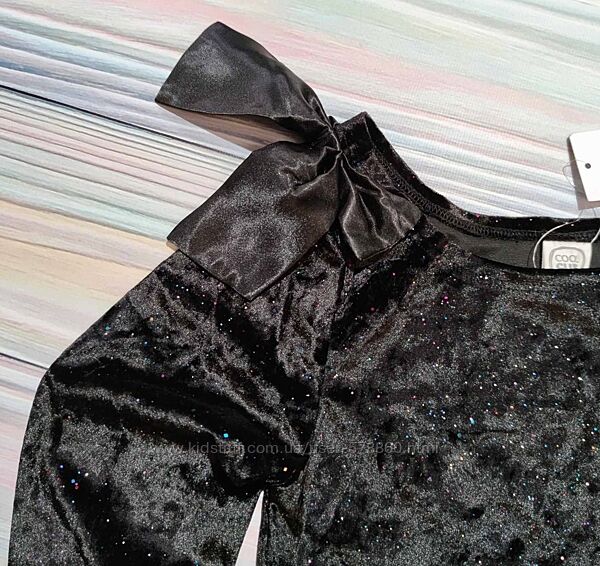 Чорна ошатна блуза від Cool Club у розмірі 152 (с18).Ошатна оксамитова блуза з блискітками та бантиком на плечі. Одне плече приспущене.