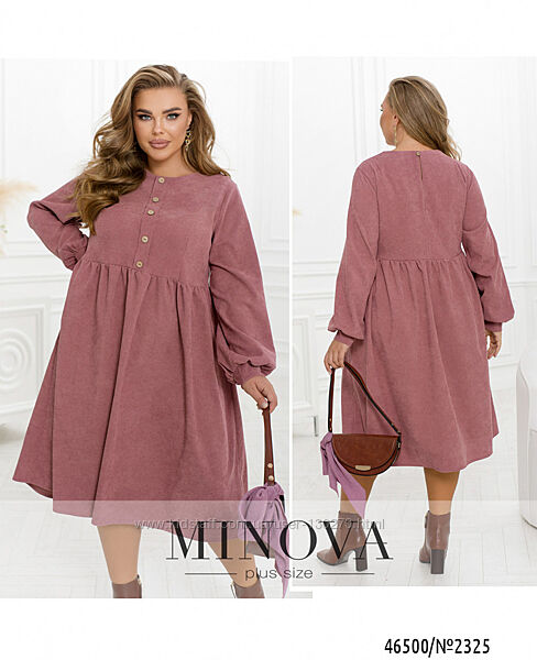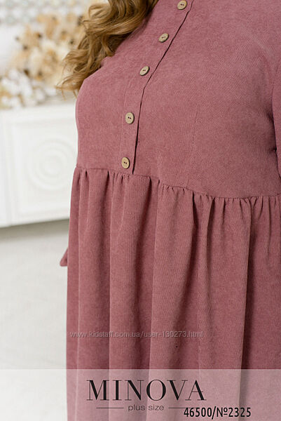 Яскрава жіночна сукня міді, виконана з текстурної вельветової тканини, внесе в образ трішки кокетства, романтизму і жіночності. Модель із завищеною талією доповнена декоративними гудзиками на планці і довгими рукавами з манжетами.