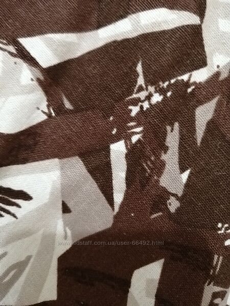 55% льон, 45% віскоза. Шестиклинка, скроєна косою (найкращий варіант крою, завжди сидить чудово), донизу трохи розширена. Якість тканини та пошиття чудове. Без підкладки. Малюнок шоколадного, бежево-сірого та молочного кольору.