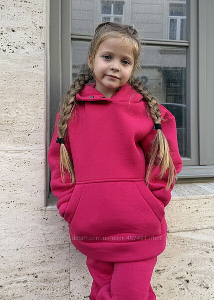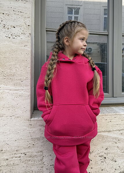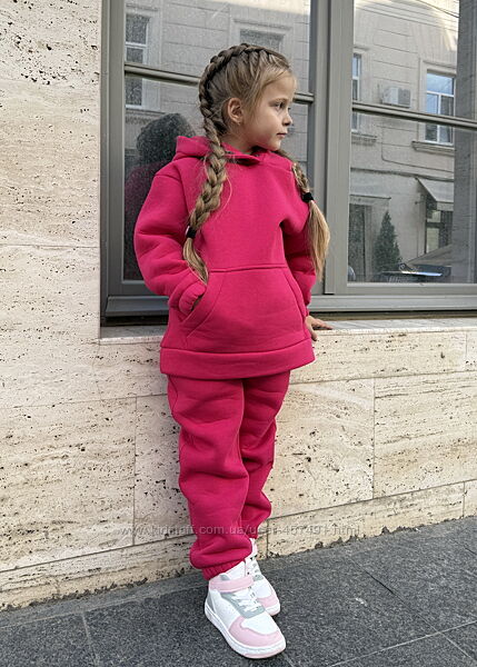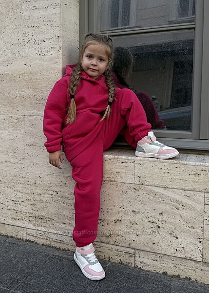 Подробное описание: Якісний дитячий теплий спортивний костюм на флісі для дівчинки малиновий