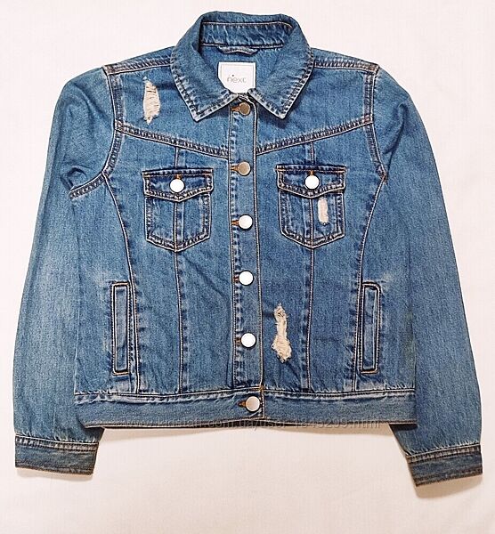 7) Рост 152 см джинсовая демисезонная куртка с рваным декором пиджак джинсова next 100% хлопок