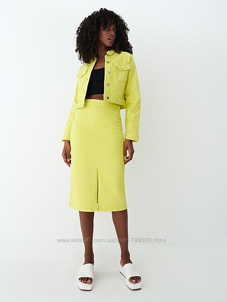 Нова куртка яскраво лимонного кольору р 40 на ОГ 85-95 склад тканини: 99% БАВОВНА, 1% ЕЛАСТАН замеры плечи 39,5 Под рукавами полуобхват 53 см Длина по спинке от воротника 53 Длина рукава 61