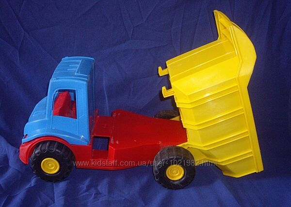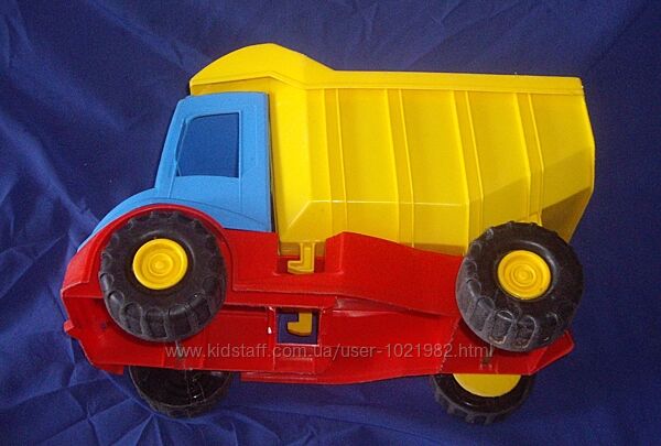 6) Кольорова пластикова машинка-самоскид-див.фото. Довжина - 40 см. Висота кабіни- 25 см. Ширина бампера- 20 см.