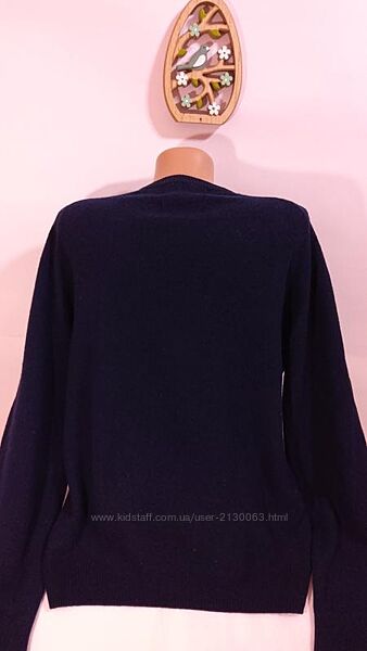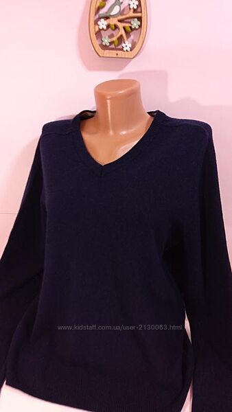 Marks&Spencer Брендовий светр, джемпер 100% Вовна lambsWool M-L темно -синій. Дорога фірма.Заміри ПОГ - 53 см (тягнеться до 60 см), довжина 63 см, довжина рукава від горловини 75 см