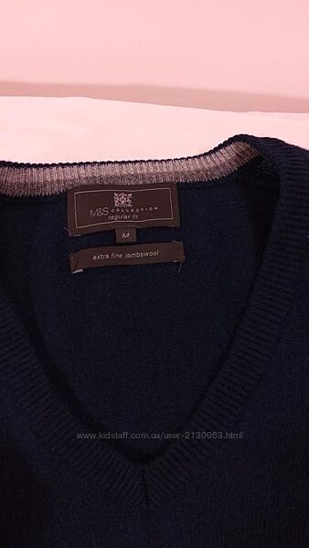 Подробное описание: Marks&Spencer Брендовий светр, джемпер 100 Вовна lambsWool M-L темно -син