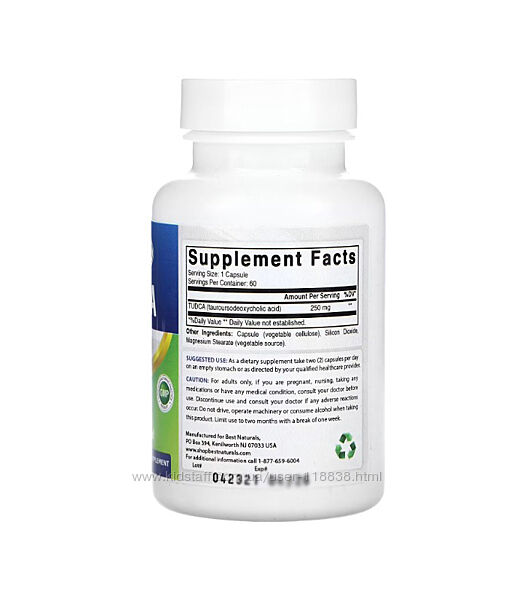 # Best Naturals, TUDCA, 250 мг, 60 капсулОПИСАНИЕ:
