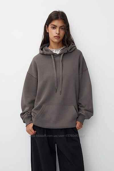 Базовый худи оверсайз на флисе , с карманом-кенгуру спереди и длинными рукавами.