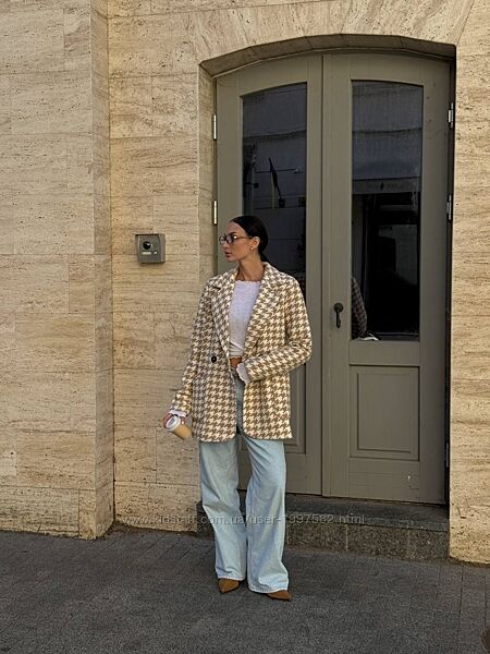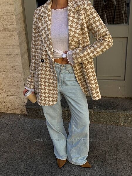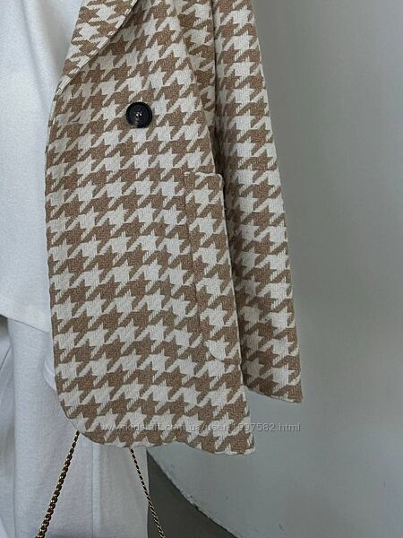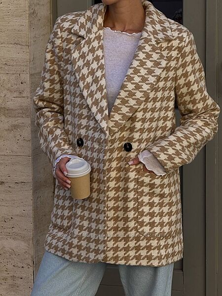 Подробное описание: Жіночий піджак твідовий гусяча лапка оверсайз подовжений жакет на весну