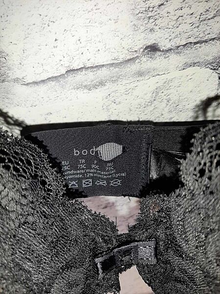 Чорний м´який чашковий бюстгальтер від Tchibo (Німеччина) формує груди м´яким і надзвичайно зручним способом. Бюстгальтер має трохи прокладену область чашки, самі чашки одягнені в елегантні м´які мережива. Завдяки еластану він зберігає свою форму, чудово сидить та пропонує високий комфорт при носінні. Дуже м´який та зручний для шкіри, досягається регульований 3-точковий регульований додатковий комфорт SoftSeal®. Бюстгальтер має регульовані ремені та стрічку для прання.