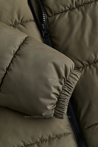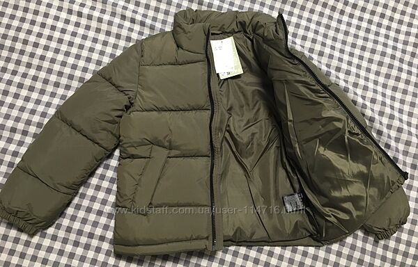Демiсезонна стегана куртка-пуфер кольору зелений хакі англійського бренду H&M 8-9років на зріст 128-134см, виготовлена з тканого матеріалу з коміром стійкою, є прорізні передні кишені та потайна гумка на манжетах, водонепроникна. Підійде на холодну осінь, єврозиму! Заміри: рукав від плеча 49см, ширина під рукавами 44см, довжина по спині від вороту до низу 50см.