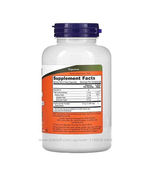 Подробное описание: NOW Foods, Подорожник в капсулах, псиллиум, клетчатка, 500 мг, 200 капсул