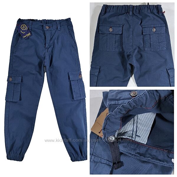 Штани джоггеры котонові демісезонні для хлопчиків. Популярна модель з накладними кишенями, виготовлена турецьким виробником. Відмінна якість матеріалу і сучасний дизайн. Оригінальна обробка кишень спереду і ззаду. Великі накладні кишені на гудзиках. Знизу на манжетах. Ширина поясв регулюється гумкой. Застібка блискавка. Посадка середня, зручна. Стретчивая тканина. Силует прямий з манжетами. Така модель не залишить байдужими Вас і Вашу дитину. Це модель для креативних хлопців. Добре будуть виглядати з сорочками,худі та пайтами, які можна вибрати на сайті нашого магазину.ПРИ ВИБОРІ РОЗМІРУ ДИВІТЬСЯ НАШІ ПРОМІРИ.