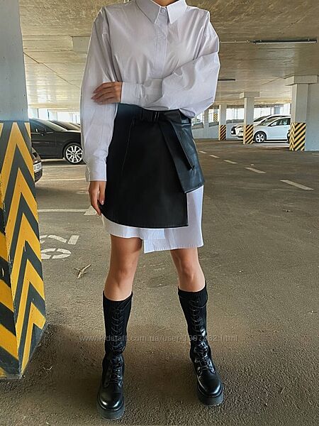 Подробное описание: Спідниця-пасок асиметрична шкіряна з екошкіри чорна