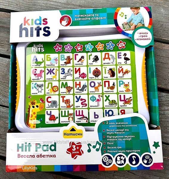 Інтерактивний планшет Kids Hits Hit Pad KH01/003 Абетка "Весела Абетка", укр та англ. мови, навчання, цифри, кольори, фігури, твариниІнтерактивний планшет спрямований на легке та веселе вивчення алфавіту.