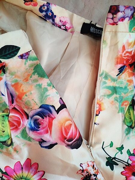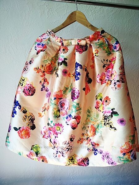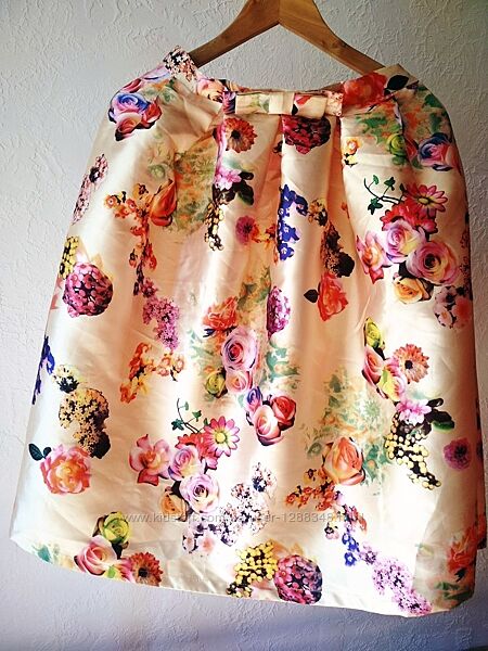 Нереально красивая, винтажная юбка в стиле ретро бежевого цвета с отливом(атласная ткань) в цветочный принт, высокая талия, миди.Спереди на поясе кокетливый бантик.