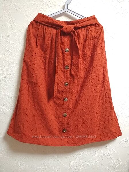 Очень красивая юбка из прошвы,длины миди,по бокам карманы,с пуговицами спереди для декораХлопковая подкладка.