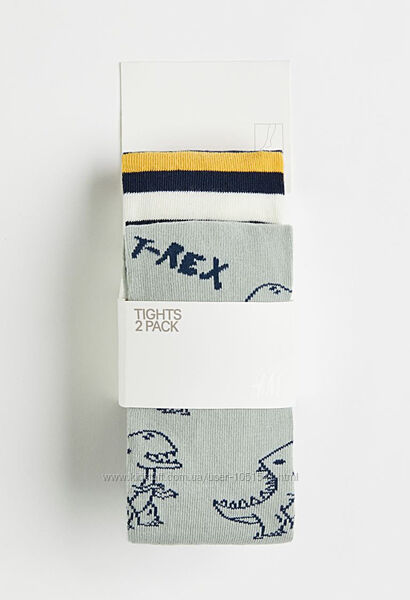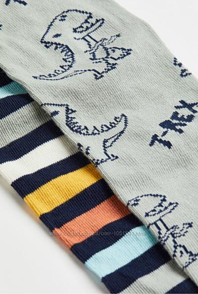 Колготки H&M з м’якої бавовняної суміші тонкої в’язки з еластичною талією.Упаковка- 2штКолір - комбінований в полоску, зелений діно