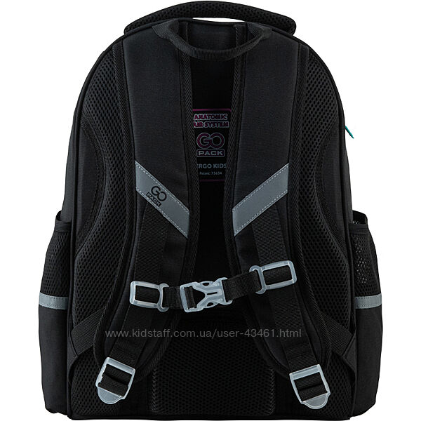 Застібки надійно вшиті, відкриваються легко та плавно.Металеві пулери на блискавках мають круглу форму і доповнені об´ємним логотипом GoPack, завдяки чому зручно лежать в руці і не вислизають з пальців.Світловідбивні елементи рівномірно розподілені по всій поверхні рюкзака, тому дитину буде видно на дорозі в темну пору доби.Дно рюкзака ущільнене та доповнене стійкими ніжками.Основний матеріал: міцний поліестер, який готовий до шкільних пригод. Він стійкий до пошкоджень і добре миється.Підкладка виготовлена з міцного поліестеру.Напівкаркасний ортопедичний рюкзак допоможе привчити дитину до порядку й акуратності — настільки в ранці продуманий функціонал. Висока якість рюкзака витримає темп маленького непосиди, а яскравий дизайн завжди підніматиме настрій.