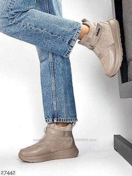 Подробное описание: Бежеві жіночі високі кросівки, черевики, натуральна шкіра та замша