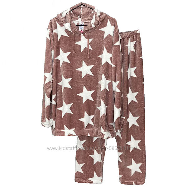 уютная велюровая пижама с штанами, мягкая и приятная к телу, теплая украшена аппликацией и бантиками, качественное исполнение, эта пижамка станет Вашей любимой-кофта свободного кроя, с капюшоном и длинными рукавами