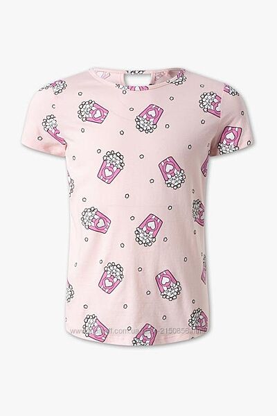Базова футболка пудрового кольору з принтом в попкорн від німецького бренду C&A (лінія підліткового одягу Here&There).Футболка виконана з м´якої бавовняної трикотажної тканини зі 100% органічної бавовни.
