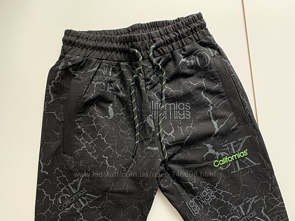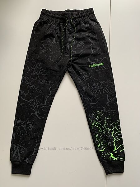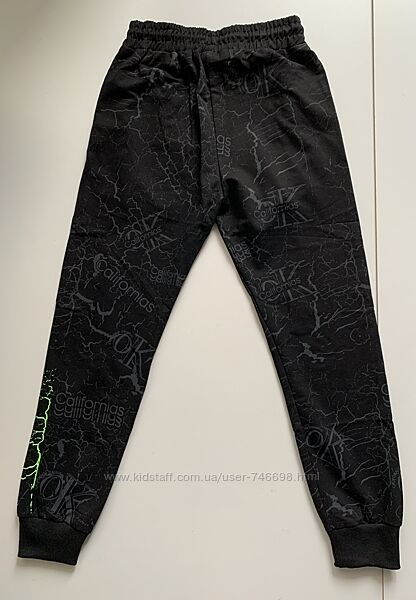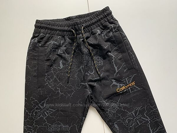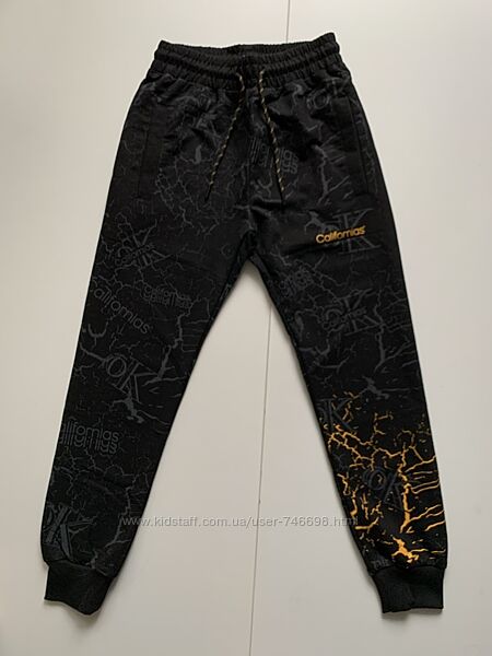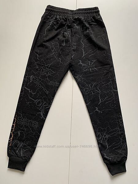 Нові надходження. Стильні спортивні штани для хлопців від відомої фірми GRACE Угорщина. Штани внизу на манжеті, в поясі на широкій гумці зі шнурком, є кишені. Колір чорний з принтом. Сезон весна-літо. Матеріал якості ЛЮКС, склад: 95% cotton, 5% lуcrа. Якість супер!При виборі розміру, орієнтуйтеся на заміри.
