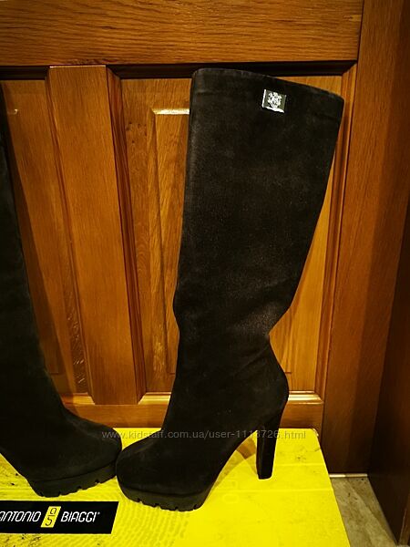 Зимові чоботи Antonio Biaggi, розмір 37, натуральна замша, натуральне хутро. Нові. Колір темно коричневі.Каблук 12, танкетка 3.