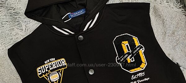 Шикарні, стильні спортивні костюми для хлопчиків. Бомбер з капюшоном, кишенями. Штани на манжеті, по талії є куліски. Розміри 134-164 см. Фірма GRACE, Угорщина.