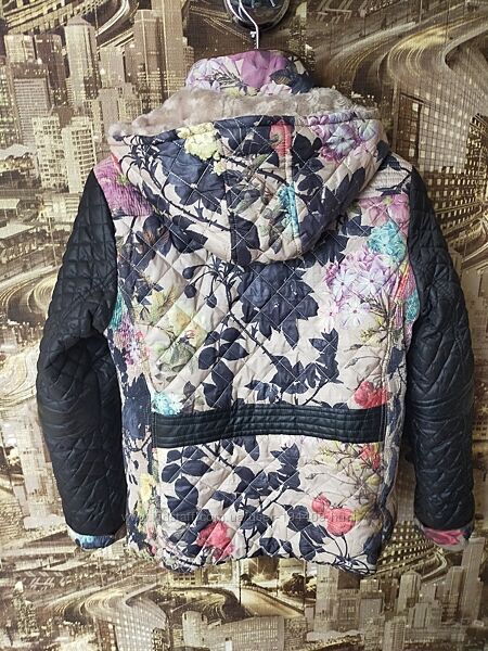 Красива зимова куртка на хутрі. Хутро м´якесеньке, дуже приємне на дотик куртка тепла. Капюшон відстібається. Має зовні дві кишені та одну зсередини. По боках красиво вистрочена Розмір М. Стан ідеальний, без дефектів!