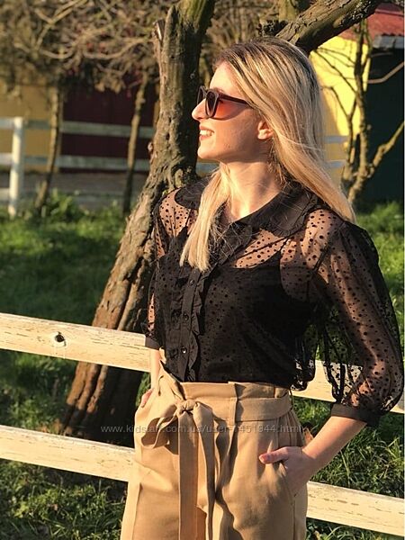 Красива модна блуза в горошок, сорочка блузка в горох сітка чорна в стиле za