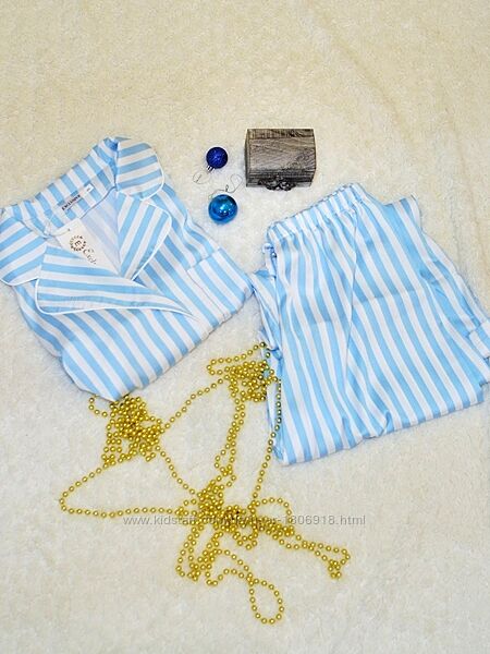 Подробное описание: Піжама сорочка/штани Nika Li Stripes Білий/блакитний шовк Армані 3 розміри