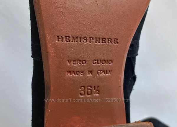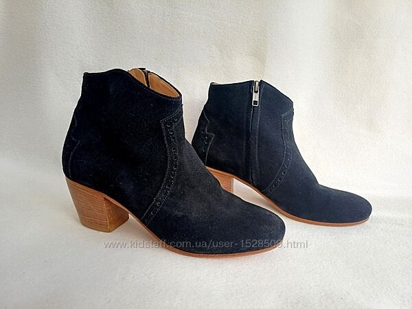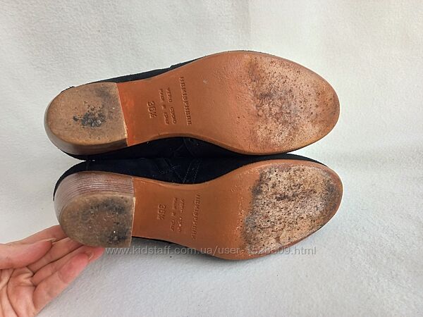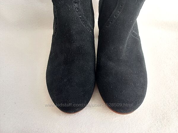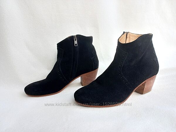 Пропоную чорні демісезонні черевики півчоботи з натуральної замшевої шкіри, від Hemisphere. Всередині натуральна шкіра. Уживані 2 раза, стан відмінний, дефектів немає, дивіться фото.Розмір вказаний 36 1/2, довжина устілки всередині 24 см, ширина 7,5 см, каблук 5,5 см, окружність зверху 28 см.