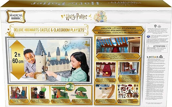 ЧАРІВНИЙ МІНІ ЗАМОК ХОГВОРТС: цей ексклюзивний набір Wizarding World має майже 2 фути. високий замок, 3 ігрові набори для класу, ванна кімната Стогне Міртл, 3 фігурки та 22 аксесуари – усе, що вам потрібно, щоб відтворити улюблені сцени Гаррі ПоттераРОЗКОШНИЙ НАБІР ІЗ СВІТЛОМ ТА ЗВУКАМИ: світло, звуки та деталі роблять Гоґвортс ідеальним місцем. Під’єднайте ванну Стогнучої Міртл, чари, зілля та класи «Догляд за магічними істотами», щоб отримати більше можливостей для гри.